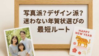 「写真がない!」「撮る時間がない!」──年賀状づくりで最も多い“あるある”です。特に12月中旬から下旬にかけては、写真素材を探すのも撮影する時間もなく、気づけば締切が迫っていることも。