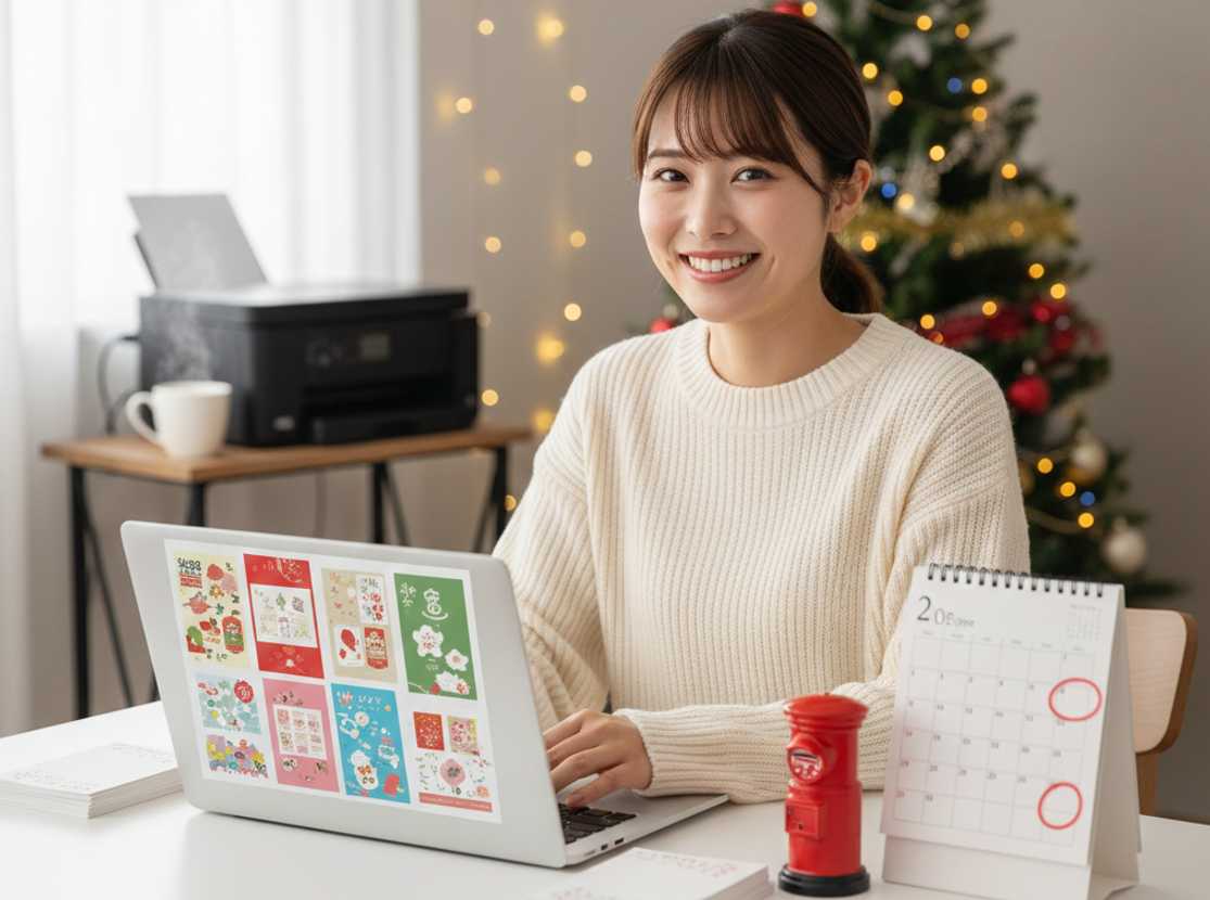 写真なし年賀状は製作時間が短いため、急ぎのときに非常に相性が良いです。最速で印刷・投函を完了させるためのサービスは以下の3つです。